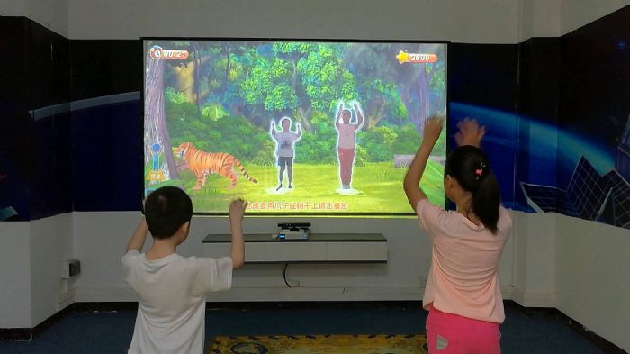 同時(shí),在AR體感教育游戲里面設(shè)置了知識(shí)問(wèn)答環(huán)節(jié),孩子們是帶著學(xué)習(xí)任務(wù)去玩,在玩的過(guò)程中必須要全神貫注地觀察,只有全情投入地參與才能完成任務(wù)。因此,AR體感互動(dòng)教學(xué)系統(tǒng)能夠培養(yǎng)孩子的觀察力和專注力。