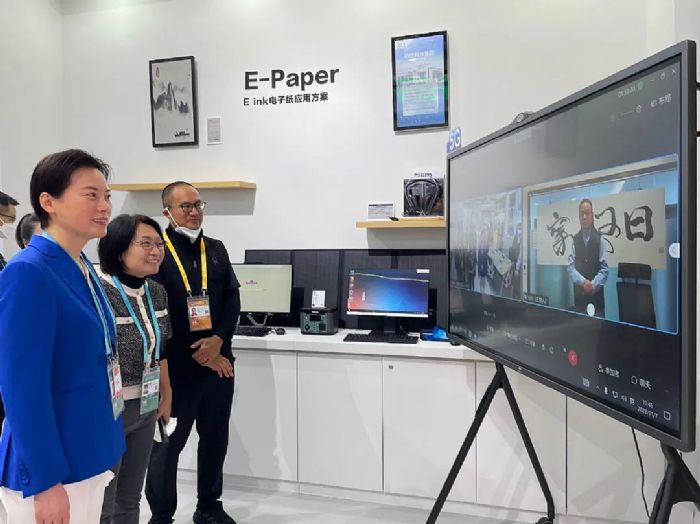 針對(duì)智慧教育應(yīng)用,現(xiàn)場(chǎng)重點(diǎn)展示了眾多行業(yè)內(nèi)顛覆性新品。如可以實(shí)現(xiàn)大小屏互動(dòng)及高效課堂管理的智慧講臺(tái);具備智慧伴學(xué)系統(tǒng)、一鍵搜題、優(yōu)質(zhì)課外讀物等豐富功能特性的智慧伴學(xué)墨水屏,有助于為學(xué)生營(yíng)造智能、高效、便捷的教育學(xué)習(xí)環(huán)境。此外還有可實(shí)現(xiàn)多屏遠(yuǎn)程教學(xué)互動(dòng)的電容智慧黑板,書(shū)寫(xiě)流暢功能豐富的教育白板,具備考勤打卡、人臉識(shí)別等功能的電子班牌,以及未來(lái)黑板、電子書(shū)包、共學(xué)板等教育黑科技,充分滿足常態(tài)化教學(xué)下課堂空間以及課后學(xué)習(xí)層面的應(yīng)用需求。