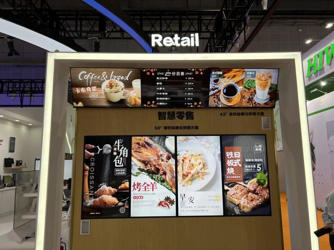 展會(huì)現(xiàn)場(chǎng)集中展示了奶茶餐飲、商超連鎖、零售櫥窗等應(yīng)用場(chǎng)景。奶茶餐飲場(chǎng)景中,數(shù)字標(biāo)牌搭配CMS信發(fā)系統(tǒng),實(shí)現(xiàn)多聯(lián)屏云拼接;智慧餐牌時(shí)尚簡(jiǎn)約,可根據(jù)日;顒(dòng)排期進(jìn)行門(mén)店上市/促銷(xiāo)等活動(dòng)推廣及展示。商超連鎖場(chǎng)景中,條形屏、貨架屏與貨架巧妙“融為一體”,吸睛奪目,實(shí)現(xiàn)用戶引流;電子價(jià)簽向消費(fèi)者展示商品名稱、價(jià)格、功能優(yōu)勢(shì)以及二維碼等相關(guān)信息,并依托于云端&局域網(wǎng)多種網(wǎng)絡(luò)方式實(shí)現(xiàn)一鍵調(diào)價(jià)。