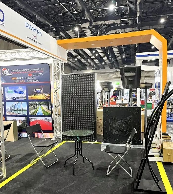 打鐵還需自身硬,在為期兩天的展會上,包括承包商、業(yè)主及政府主管部門泰國高速公路部(DOH)等業(yè)內(nèi)人士均對電明DIANMING作為智慧交通情報板領(lǐng)域全球領(lǐng)先制造商的印象進一步加深,特別是本次展出的升級版透鏡式LED情報板(VMS),透鏡打孔定制圖形可變信息標志(Variable LED Predefined Sign),屬于我司首次將已大規(guī)模安裝在歐洲各國高速公路的EN12966高標準產(chǎn)品引入泰國本土,參觀客戶在了解到泰國多條高速公路已成功安裝了電明交付的該類設(shè)備時更是贊許有嘉。