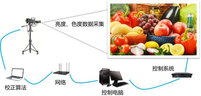 逐點(diǎn)校正是通過對(duì)LED顯示屏上的每個(gè)子像素的亮度和色度數(shù)據(jù)進(jìn)行采集,給出每個(gè)基色子像素的校正系數(shù),將其反饋給顯示屏的控制系統(tǒng),由控制系統(tǒng)應(yīng)用校正系數(shù),實(shí)現(xiàn)對(duì)每一個(gè)基色子像素的差異性驅(qū)動(dòng),從而提高顯示屏的亮度、色度的均勻性和色彩保真度。