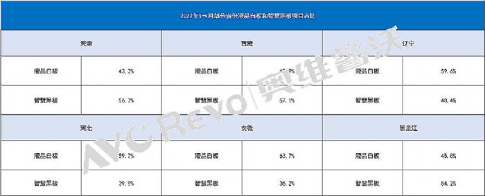 2022年1-9月部分省份液晶白板和智慧黑板項(xiàng)目占比