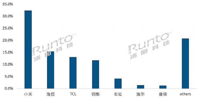 根據(jù)洛圖科技(RUNTO)數(shù)據(jù),第三季度,小米以32.4%的出貨占比位居榜首。購買小米電視的用戶與傳統(tǒng)商用電視的酒店、地產(chǎn)商、企業(yè)等大型市場主體有顯著不同,其大多數(shù)為小微企業(yè)主,個體工商戶、以及事業(yè)單位。在此背景下,C端定位的小米電視在零售或小規(guī)模采購之后,大量進入商用場景。