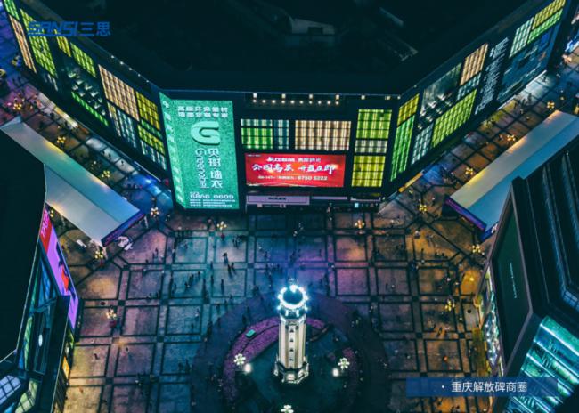 解放碑一直是重慶的“文化符號”,隨之而起的商圈也是重慶的地標之一。每當(dāng)夜幕降臨,解放碑商圈的LED開始不斷變化出亮麗的色彩,特別是由三思打造的高31米、總面積426㎡的戶外顯示屏 ,充滿科技感的畫面讓這個老牌商圈重?zé)ü獠,也豐富了游人的出行體驗。