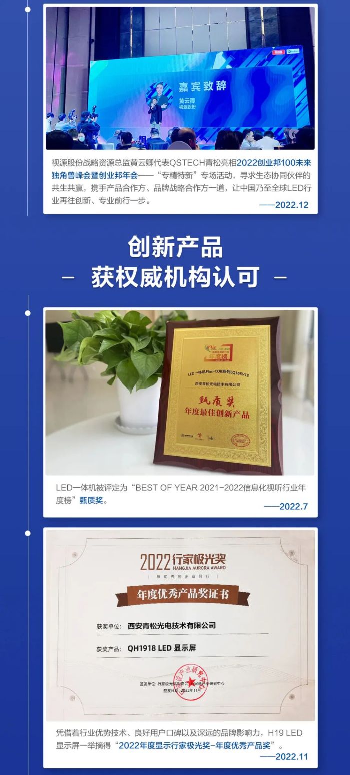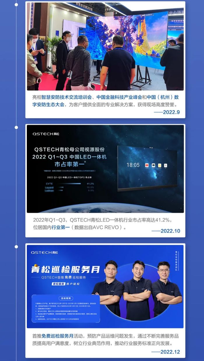 2022年Q1-Q3,QSTECH青松LED一體機行業(yè)市占率高達41.2%,位居國內(nèi)行業(yè)第一(數(shù)據(jù)出自AVCREVO)。中國41.2%10.5%9.9%18:05 日日00 —2022.10