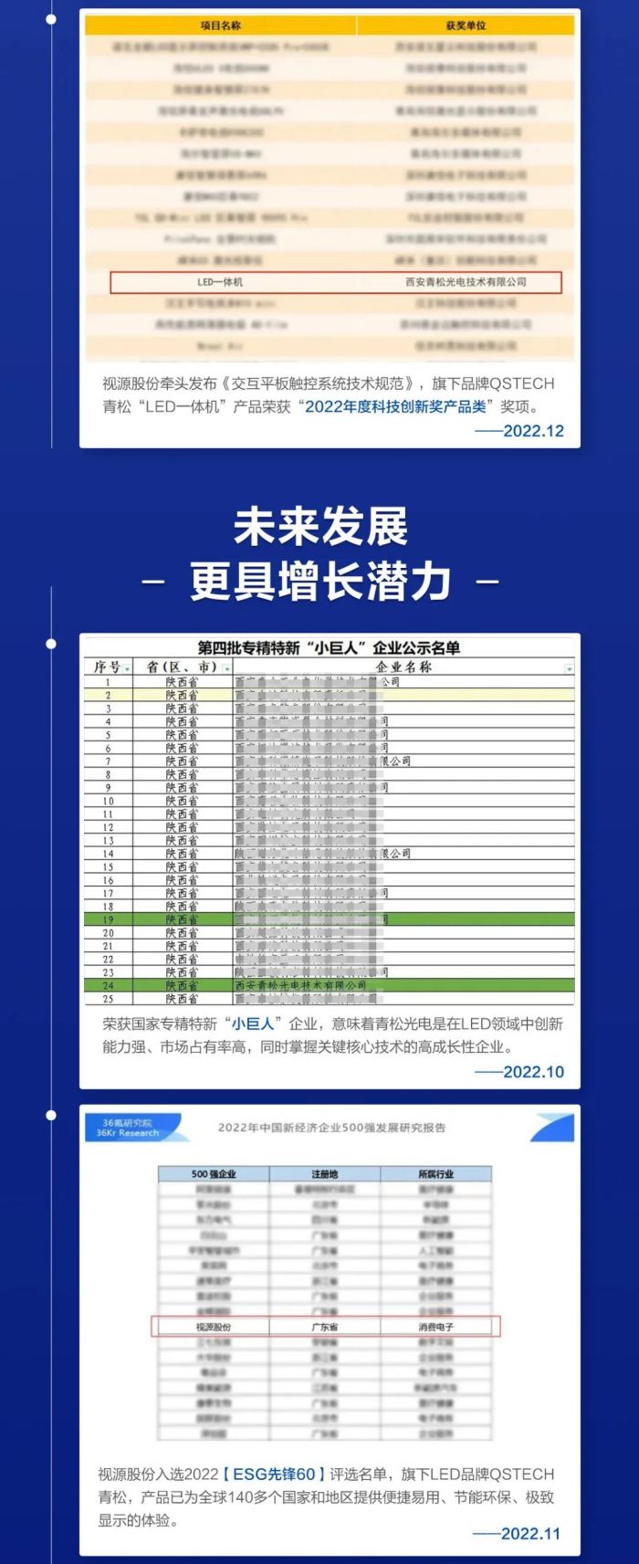 視源股份獲評2022年中國新經(jīng)濟企業(yè)500強,QSTECH青松的穩(wěn)健發(fā)展以及高速增長,為此次獲評提供一定支持。