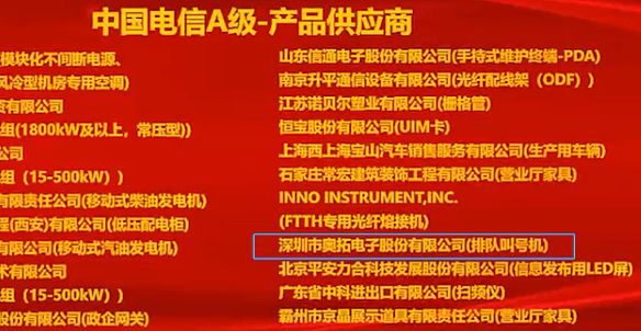 中國電信是奧拓電子的重要戰(zhàn)略合作伙伴,是奧拓電子盡善盡美、創(chuàng)造精品、服務(wù)客戶的理念促成了二者長期合作。自2012年起,奧拓電子就成為了電信集團(tuán)的一級(jí)集采供應(yīng)商,雙方攜手已近十個(gè)年頭。