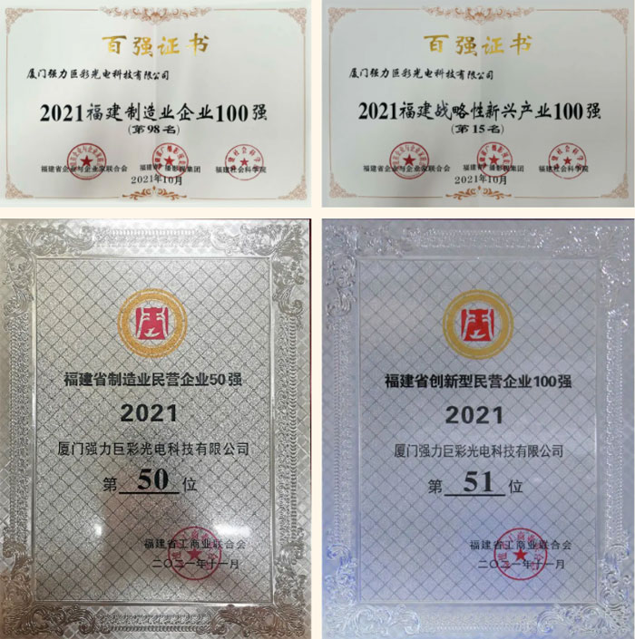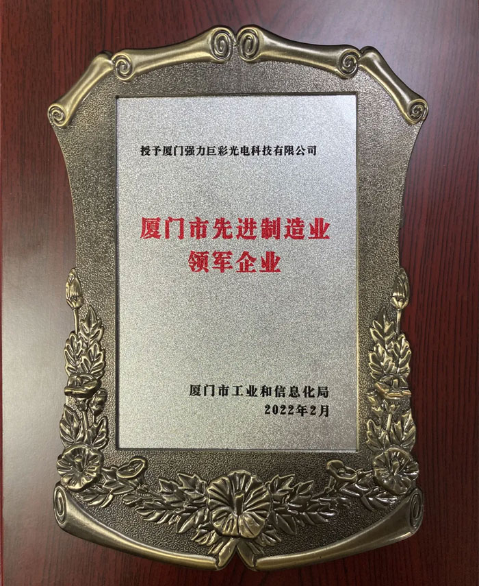 本次強力巨彩榮膺“廈門市先進制造業(yè)領(lǐng)軍企業(yè)”,是政府及行業(yè)有關(guān)部門對強力巨彩技術(shù)創(chuàng)新、行業(yè)地位、品牌價值及企業(yè)綜合實力的高度認可與肯定。