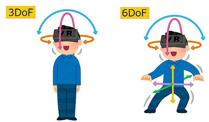 對(duì)于接觸VR不多的人來(lái)說(shuō),6DoF(六自由度)可能是一個(gè)陌生的詞匯。簡(jiǎn)單來(lái)說(shuō),VR一體機(jī)通常可以分為3DoF和6DoF兩種:3DoF代表VR頭顯能追蹤使用者轉(zhuǎn)動(dòng)頭部的動(dòng)作,相當(dāng)于讓使用者在VR世界中一個(gè)固定的位置上自由觀看;6DoF則代表VR頭顯不僅能夠追蹤使用者轉(zhuǎn)動(dòng)頭部的動(dòng)作,還能追蹤使用者在現(xiàn)實(shí)世界中的移動(dòng),并將其映射到VR世界中,從而帶來(lái)沉浸感的參與體驗(yàn)。