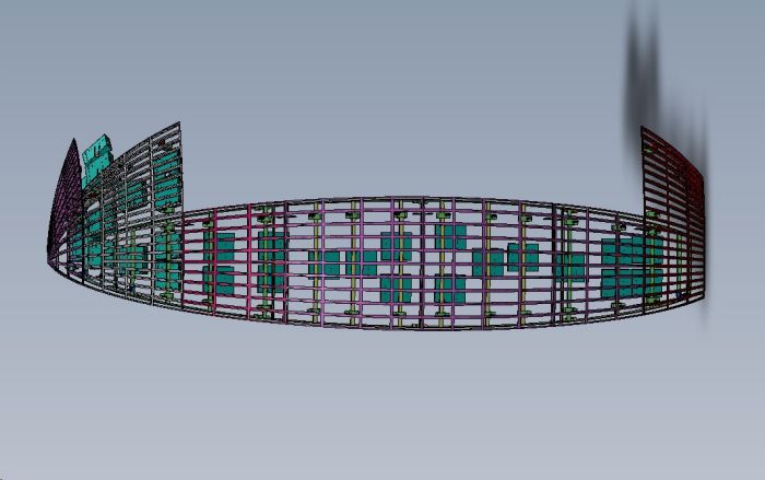洲明文創(chuàng)團隊創(chuàng)造性地在球形結構內(nèi)部則分成4層龍骨結構,每層依據(jù)球體構型的高精度數(shù)據(jù)定制方通長度。環(huán)繞核心主梁的龍骨結構,實現(xiàn)的整個球體的初步成型。