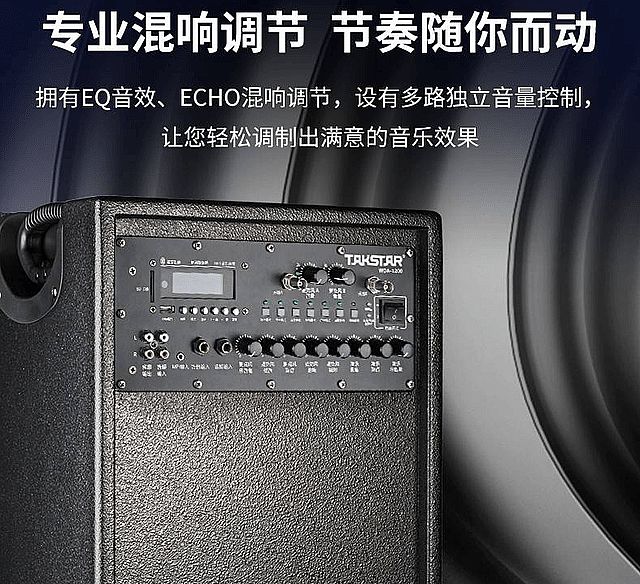 得勝WDA-1200是一款多功能、能輸出120W大功率有源音箱。配置UHF雙通道麥克風,具有多路獨立音量控制和EQ音效、ECHO混響調(diào)節(jié)以及五個話筒模式,具有音樂播放功能、藍牙功能、DSP方案音樂原聲消唱功能。同時配置3.5mm、RCA音頻輸入和輸出接口,能連接外部音頻輸入,電視、電腦、CD機等,還有MP3等多種音源信號、6.35MM有線麥克風接口等。