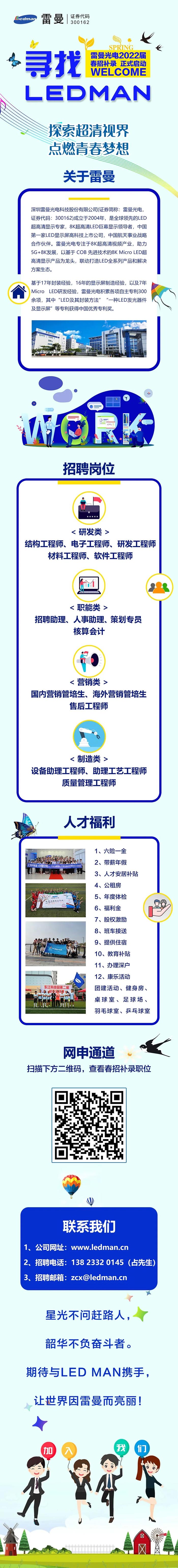 深圳雷曼光電科技股份有限公司(證券簡稱∶雷曼光電,證券代碼∶300162)成立于2004年,是全球領先的LED 超高清顯示專家,8K超高清LED巨幕顯示領導者,中國第一家LED顯示屏高科技上市公司,中國航天事業(yè)戰(zhàn)略合作伙伴。雷曼光電專注于8K超高清視頻產業(yè),助力5G+8K發(fā)展,以基于COB先進技術的8K Micro LED超高清顯示產品為龍頭,聯(lián)動打造LED全系列產品和解決方案生態(tài)。