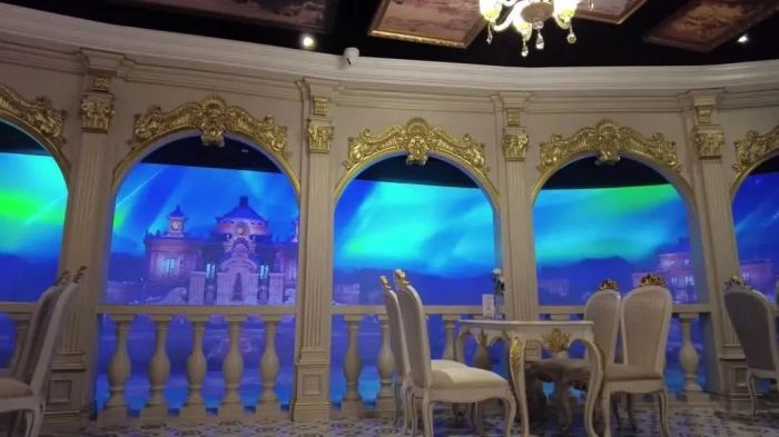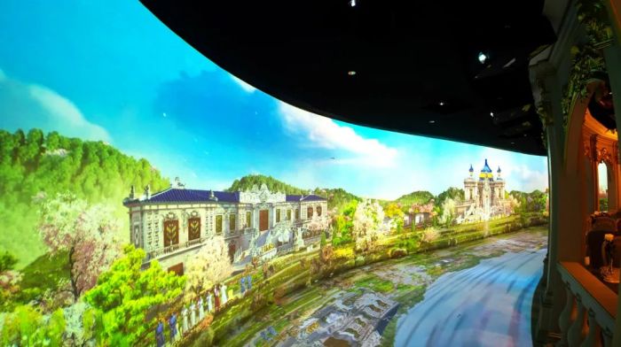 買(mǎi)賣(mài)街核心景觀(guān)之一——西洋幻境·拾光咖啡廳,不僅重現(xiàn)巴洛克內(nèi)飾,更以8臺(tái)巴可iQ7系列創(chuàng)造弧形“影壁”,將傳統(tǒng)“窗景”概念煥然一新,用細(xì)膩、逼真的沉浸大畫(huà)面“造景”西洋樓,重現(xiàn)皇家園林盛況,拓展“文化+商業(yè)”業(yè)態(tài)新創(chuàng)意。