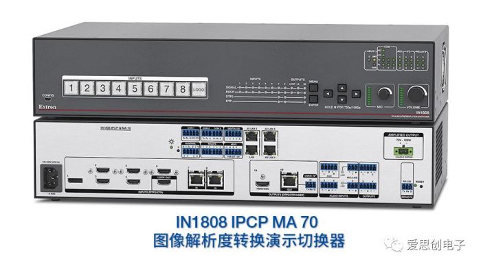Extron IN1808 IPCP MA 70 作為 AV 系統(tǒng)的核心, 負(fù)責(zé) AV 信號(hào)切換、音頻信號(hào)處理及 AV 系統(tǒng)控制等重要任務(wù)。它將來(lái)自 DTP T HWP 4K 331 D 墻面板發(fā)送器、便攜設(shè)備無(wú)線投屏設(shè)備等通過(guò)有線及無(wú)線連接方式將 HDMI 4K 信號(hào)傳輸至天花板的投影機(jī)以及拼接墻系統(tǒng)。