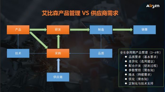 產(chǎn)品、研發(fā)、采購三位一體,艾比森一直致力于與供應(yīng)商伙伴共同構(gòu)建一個緊密聯(lián)系、獨具優(yōu)勢的供應(yīng)鏈組織。會上,艾比森戰(zhàn)略營銷體系副總經(jīng)理、產(chǎn)品開發(fā)體系總經(jīng)理、戰(zhàn)略采購部總監(jiān)分別從艾比森產(chǎn)品管理與八大標準、IPD產(chǎn)品開發(fā)流程、供應(yīng)鏈管理等維度分析合作供應(yīng)商如何參與艾比森的產(chǎn)品規(guī)劃、產(chǎn)品開發(fā)過程,在深度合作中全面協(xié)同發(fā)展,促進能力提升,真正實現(xiàn)共贏。