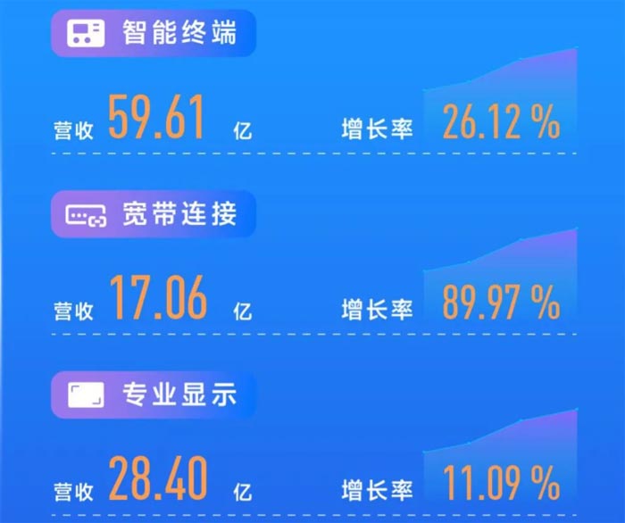 公開資料顯示,創(chuàng)維數(shù)字長期致力于為全球用戶提供全面系統(tǒng)的超高清終端呈現(xiàn)、寬帶網(wǎng)絡(luò)連接和超高清行業(yè)應(yīng)用綜合解決方案,專注于數(shù)字智能終端、寬帶網(wǎng)絡(luò)連接設(shè)備、融合終端、VR終端等產(chǎn)品的研發(fā)、生產(chǎn)、銷售以及軟件、系統(tǒng)、平臺(tái)的研發(fā)設(shè)計(jì)。2021年,在全球供應(yīng)鏈緊張、原材料價(jià)格暴漲以及疫情反復(fù)的背景下,公司通過提前布局和市場開拓,智能終端、寬帶連接、專業(yè)顯示三大業(yè)務(wù)的產(chǎn)品銷量占比均穩(wěn)步提升,公司營收和凈利潤實(shí)現(xiàn)雙增長。