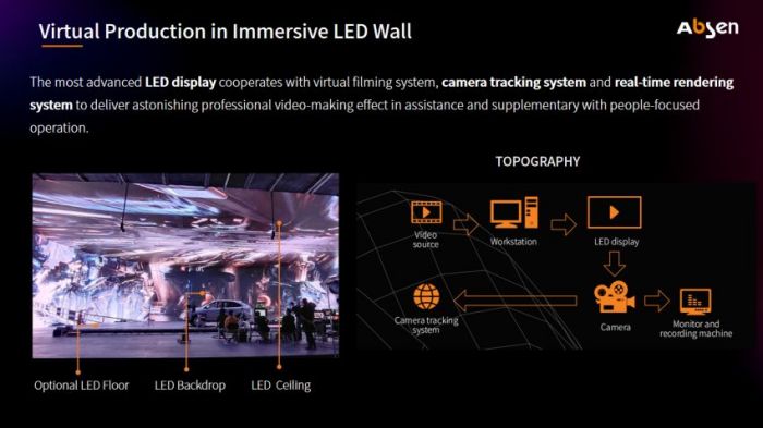 發(fā)布會(huì)上,艾比森LED虛擬影棚解決方案精彩亮相,融合最新顯示技術(shù)的LED顯示屏與虛擬攝像系統(tǒng)、空間定位系統(tǒng)、實(shí)時(shí)渲染系統(tǒng)協(xié)同工作,操作人性化,相互補(bǔ)充和加強(qiáng),所見即所得,出片效率高,專業(yè)視頻拍攝效果令人驚嘆。目前已在海內(nèi)外多個(gè)重點(diǎn)項(xiàng)目中得到應(yīng)用,廣受好評(píng)。