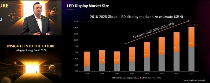 當(dāng)前,LED顯示技術(shù)正全面滲透到萬億級(jí)Pro-AV專業(yè)視聽市場(chǎng),成為商顯大屏的主流之選,未來大有可為。