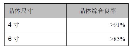 (1)在 LED 襯底材料領(lǐng)域:公司擁有自主知識產(chǎn)權(quán)的晶體生長方法“坩堝下降法”以及自行設(shè)計制造加工的 MCGE 型晶體爐進(jìn)行藍(lán)寶石晶體的生長,相較其他長晶方法(如“泡生法”、“熱交換法”等),“坩堝下降法”具有如下特點:1.設(shè)備簡單,操作程序容易控制,便于實現(xiàn)全自動控制,成品率高,擴產(chǎn)能力迅速,容易大規(guī)模量產(chǎn);2.下降法生長單晶更符合自然規(guī)律,熔體內(nèi)雜質(zhì)和汽泡更容易排出,從而得到優(yōu)良單晶體;3.操作靈活性高,可以在同一臺晶體爐內(nèi)生長任意方向的 2-8英寸等徑單晶體。不同尺寸晶體的綜合良率如表格所示: