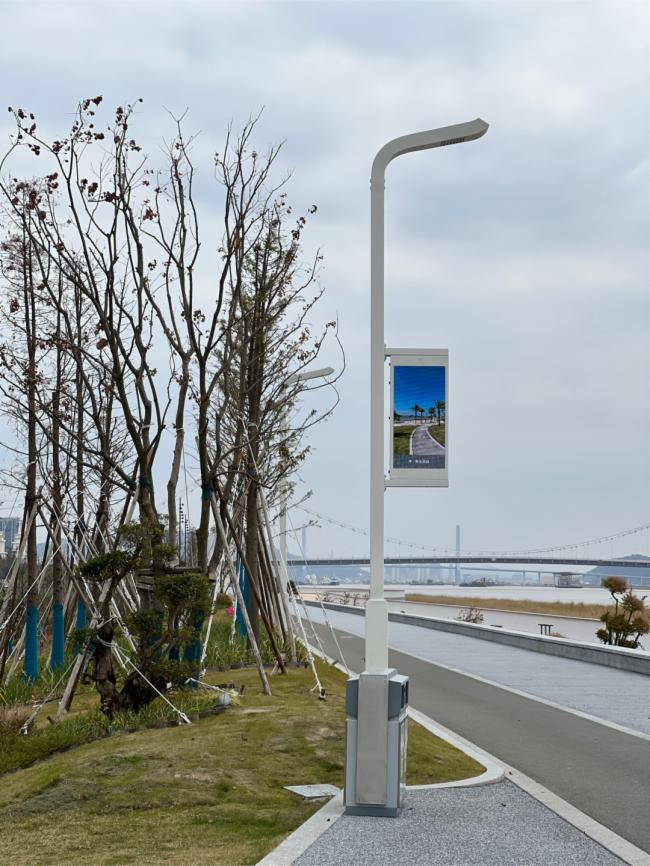 多桿合一的顯示屏采用小間距戶外顯示屏,在脫網(wǎng)情況下也可自主運行,去玻化、全防水戶外設(shè)計,大大降低了維護成本。監(jiān)控能實現(xiàn)前端智能分析,車輛監(jiān)控,行人監(jiān)控,與電子警察連接后,有力地保障了出行的安全性。另外,燈桿還配備了道路標(biāo)志和廣播功能,提高了出行的便利性。