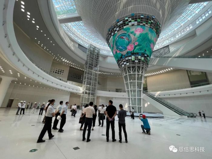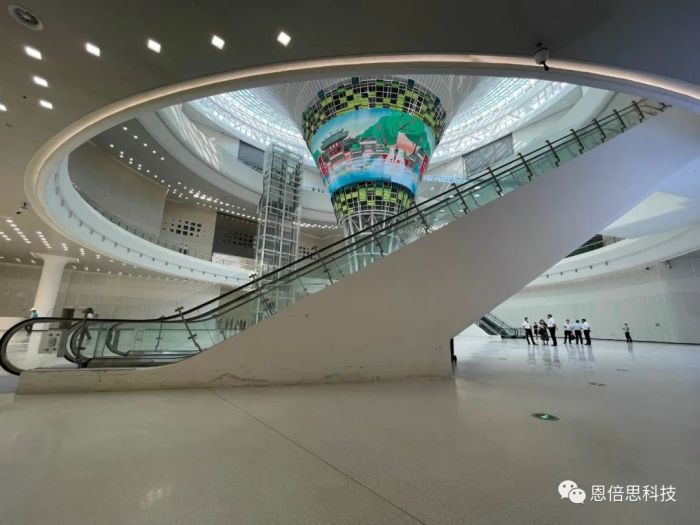 巨型裸眼3D漏斗屏位于湖北省科技館一樓中庭,是目前世界上最大的異形LED漏斗屏。恩倍思科技負(fù)責(zé)巨型裸眼3D漏斗屏整體研發(fā)設(shè)計(jì),開模生產(chǎn),制造和工程交付,整體設(shè)計(jì)面積達(dá)310㎡,像素達(dá)到9000*2448可播放8K以上超高清視頻,最終帶給游覽者美輪美奐的沉浸式感官盛宴。