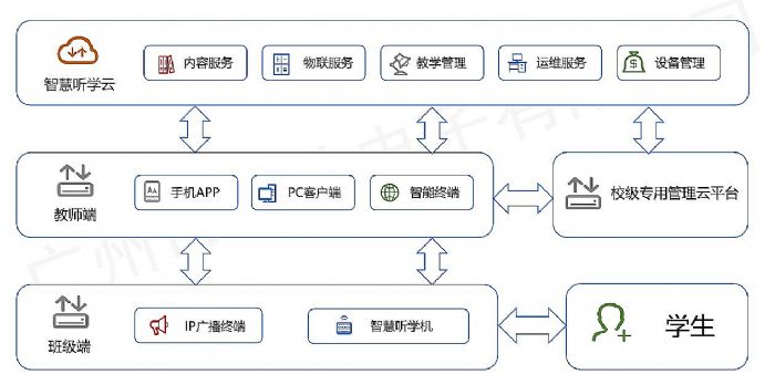 通過云平臺+app+班級聽學(xué)機(jī)+內(nèi)容體系的簡單部署鏈接每一間教室的智能硬件,提供持續(xù)更新的免費(fèi)資源、個性定制的聽學(xué)內(nèi)容,隨時隨地使用聽見時代APP。