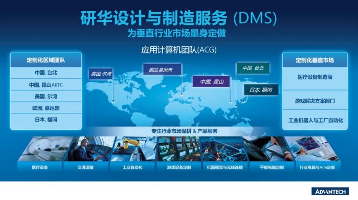 順應(yīng)中國“芯”市場趨勢的發(fā)展, 行業(yè)應(yīng)用需求不斷升級。從醫(yī)療、金融、電力、工業(yè)機器人、智慧工廠等領(lǐng)域,研華專注行業(yè)市場與產(chǎn)品服務(wù),也提供客制化與設(shè)計整合服務(wù)(DMS),再配合研華全球客制化區(qū)域團隊,為不同地區(qū)提供高效垂直整合的本地解決方案。