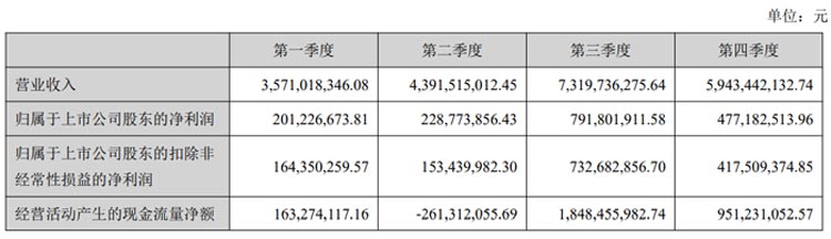 報告期內,公司實現(xiàn)營業(yè)收入2,122,571.18萬元,同比增長23.91%,實現(xiàn)歸屬于上市公司股東的凈利潤169,898.50萬元,同比下降10.65%,實現(xiàn)扣除非經常性損益后的歸屬于上市公司股東的凈利潤146,798.25萬元,同比下降17.08%;非經常性損益23,100.25萬元,同比增長76.02%。