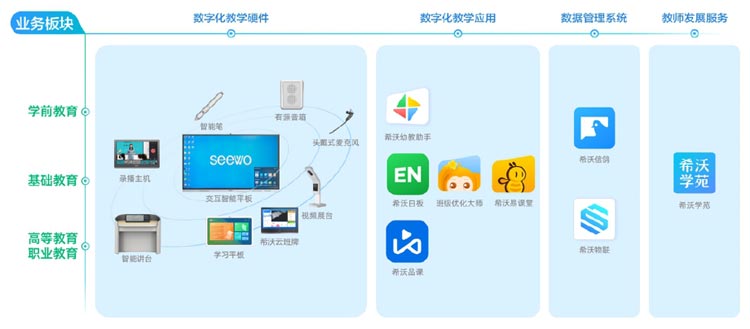 育信息化應用工具、教育信息化前沿理論研究成果、教育信息技術常態(tài)化應用培訓服務等。希沃專注于教師、教室和教學等課堂服務,通過結合通信、大數(shù)據(jù)、物聯(lián)網、人工智能等數(shù)字技術,積累沉淀經驗與資源,升級產品體系,提升用戶體驗及價值呈現(xiàn)。