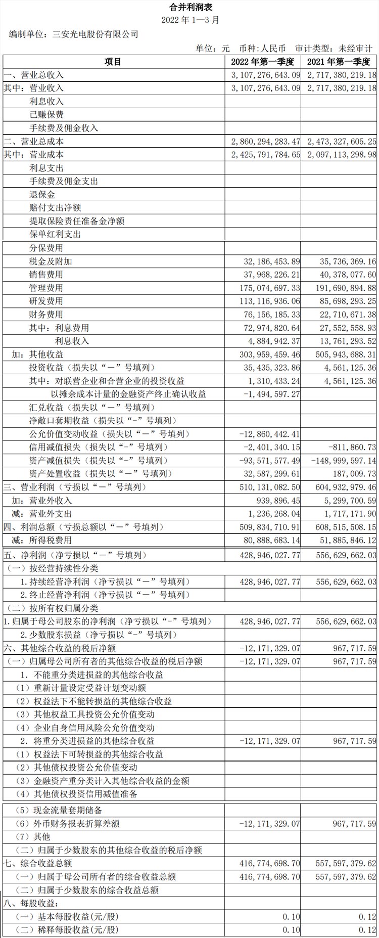 三安光電2022年一季報(bào):營(yíng)收31.1億,歸母凈利潤(rùn)4.3億