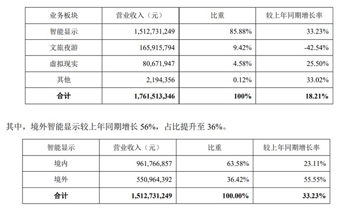 2、智能顯示支撐業(yè)績?cè)鲩L