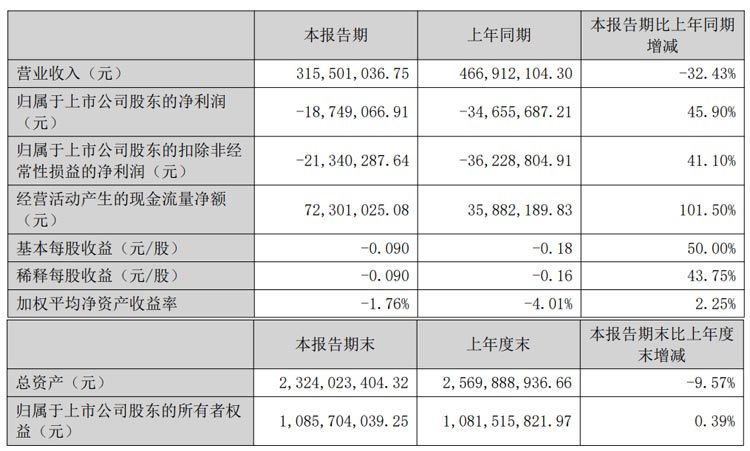4月26日,隆利科技發(fā)布2022年第一季度報告。報告期內(nèi),公司營業(yè)收入3.16億元,同比減少32.43%。歸屬于上市公司股東的凈虧損為1874.9萬元,同比收窄45.90%。歸屬于上市公司股東的扣除非經(jīng)常性損益的凈虧損為2134萬元,基本每股收益-0.090元。