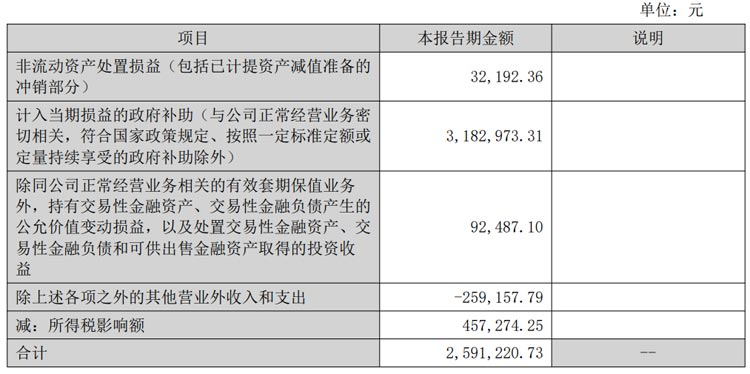 非經(jīng)常性損益項目和金額