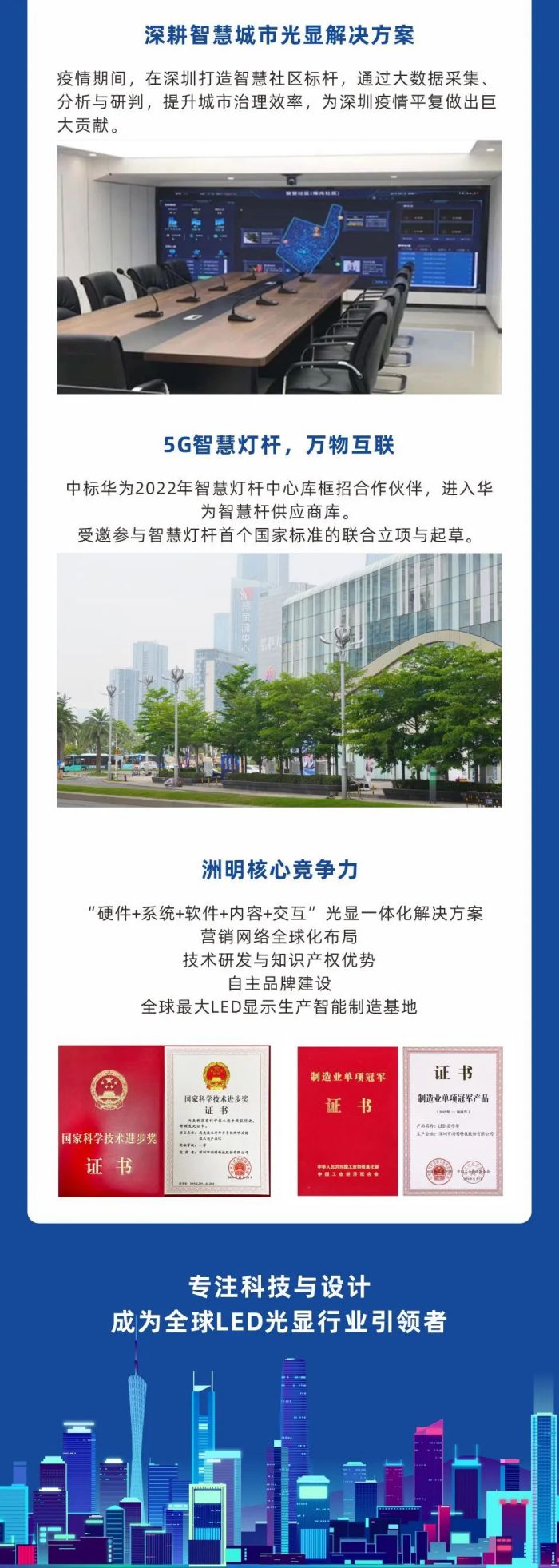 公司深耕LED下游應(yīng)用產(chǎn)品及光顯解決方案,堅持走自主品牌建設(shè)道路,持續(xù)在LED光顯產(chǎn)業(yè)突破行業(yè)上升的新極限,獲得國家科學(xué)技術(shù)進(jìn)步一等獎、國家制造業(yè)單項冠軍,打造行業(yè)最具智能化的“燈塔工廠”。同時,公司在MiniLED、LED數(shù)字電影放映、XR數(shù)字虛擬制作、裸眼3D創(chuàng)意視顯、5G+8K創(chuàng)新應(yīng)用等新興領(lǐng)域取得重大突破,在傳統(tǒng)監(jiān)控室、會議交互設(shè)備、室外廣告大屏、小間距LED下沉市場繼續(xù)保持行業(yè)領(lǐng)先。公司緊密關(guān)注拓展海外市場,在海外標(biāo)桿項目、國際市場新興需求上持續(xù)前進(jìn),實現(xiàn)了數(shù)量發(fā)展、質(zhì)量成長的雙豐收。公司憑借領(lǐng)先的研發(fā)創(chuàng)新技術(shù)、卓越的生產(chǎn)品質(zhì)、專業(yè)的技術(shù)服務(wù),在國內(nèi)外市場均擁有較高的知名度和美譽(yù)度。
