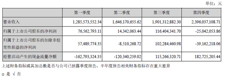 2021 年分季度主要財務(wù)數(shù)據(jù)
