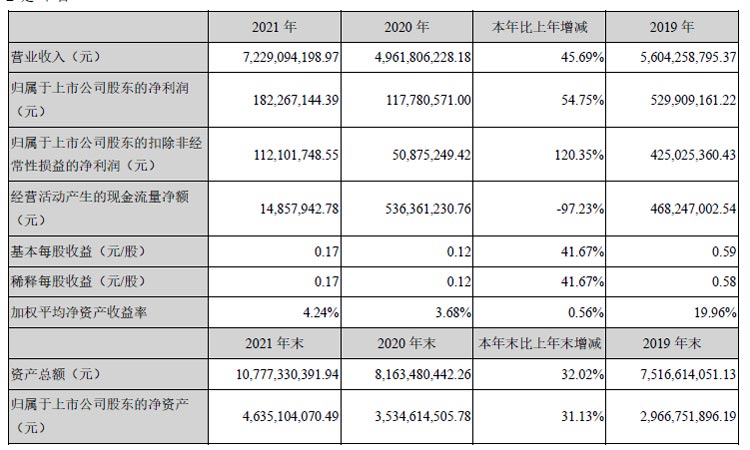 報告期內(nèi),公司實現(xiàn)營業(yè)總收入72.29億元,較去年同期增長45.69%,其中海外營業(yè)收入28.43億元,較去年同期增長46.83%,國內(nèi)營業(yè)收入43.86億,較去年同期增長44.97%;實現(xiàn)歸屬于母公司所有者的凈利潤為1.82億元,較去年同期增長54.75%;經(jīng)營性現(xiàn)金流量凈額1,485.79萬,較去年同期下降97.23%,主要因為主要為應(yīng)對報告期內(nèi)原材料價格波動風(fēng)險增加原材料預(yù)付款所致。