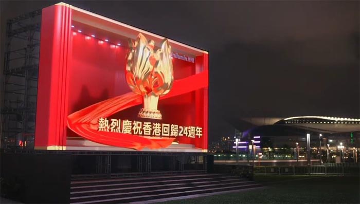 為賀建黨百年、慶香港回歸,由香港各界慶典委員會攜手公司共同打造的大型文化科技光影秀——光影3D耀維港主題光影秀在香港添馬公園盛大啟幕。光影秀以“科技、創(chuàng)新”為主題,將獻(xiàn)禮建黨百年與香港回歸主題相結(jié)合,通過裸眼3D、燈光、顯示、控制、多媒體藝術(shù)裝置等技術(shù)手段的融合,致力于讓市民群眾在沉浸式的燈光體驗中了解黨史文化,感受香港與祖國的血脈相連,見證香港始終與祖國同呼吸、共命運(yùn)、心連心。