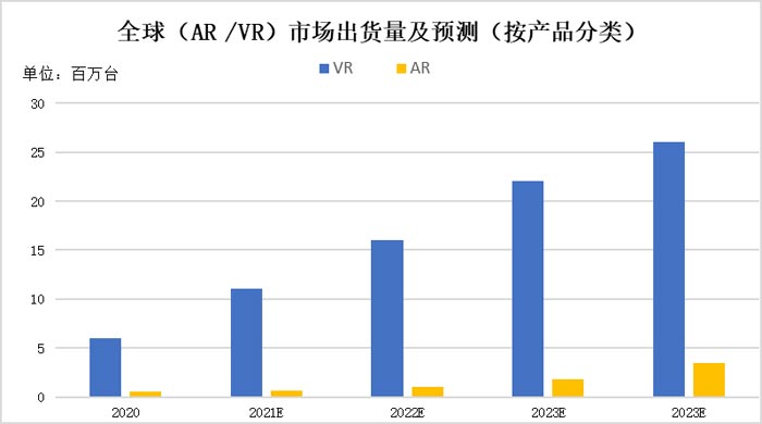 據(jù)IDC調(diào)研報告顯示,2021年全年全球AR/VR頭顯出貨量達(dá)1123萬臺,同比增長92.1%,其中VR頭顯出貨量達(dá)1095萬臺,突破年出貨量一千萬臺的行業(yè)重要拐點(diǎn)。據(jù)IDC預(yù)測,2022年全球VR頭顯出貨1573萬臺,同比增長43.6%;到了2024年,這個出貨數(shù)字將會超過2500萬臺。根據(jù)CounterpointGlobalXR(AR/VR)的最新預(yù)測,2021年至2025年,XR頭顯貨量預(yù)計增長10倍,達(dá)1.05億臺。