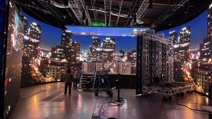 為了將現(xiàn)實與虛擬場景進行更逼真、更深刻的融合,大藍科技BLUEBOX xR Studios選擇了與雷迪奧攜手打造LED屏幕系統(tǒng)。虛擬拍攝影棚內(nèi)使用了雷迪奧明星產(chǎn)品BP2V2及BM4面板進行搭建,滿足其對于廣色域、色溫控制的挑剔要求,同時減少摩爾紋現(xiàn)象,保證相機內(nèi)拍攝亦能呈現(xiàn)最完美的圖像質(zhì)感。