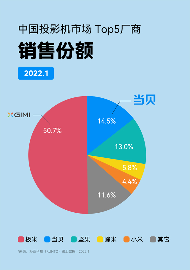 自2019年當(dāng)貝正式入局家用投影市場(chǎng)并推出首款當(dāng)貝投影產(chǎn)品,短短3年時(shí)間,當(dāng)貝投影就一躍成長(zhǎng)為智能投影市場(chǎng)TOP2品牌——洛圖科技數(shù)據(jù)顯示,2022年1月,當(dāng)貝投影的銷(xiāo)售份額直接超過(guò)了已在業(yè)界深耕十年之久的競(jìng)爭(zhēng)對(duì)手。