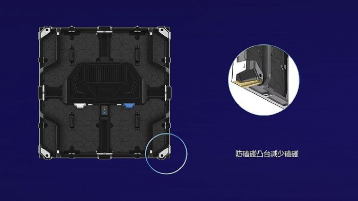 采用無線化設(shè)計,大大提高了屏體運行的穩(wěn)定性能。同時,箱體底部防磕碰凸臺設(shè)計,保護燈珠,提升防撞能力。針對半戶外、戶外環(huán)境設(shè)計,屏體的防塵、抗震等防護性能均滿足要求,具有高穩(wěn)定可靠性能。