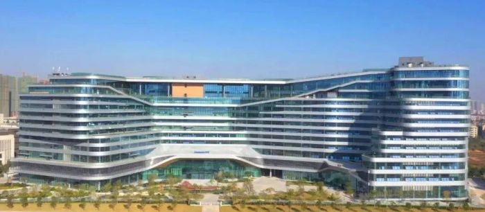 洲明科技大亞灣科技園智能制造基地二期位于坪山河畔,流線型的玻璃幕墻與周邊的茂密綠植相映成趣。