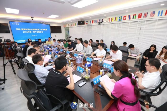產(chǎn)業(yè)聯(lián)盟,融合升級。5月27日,深商高端制造產(chǎn)業(yè)聯(lián)盟和深商AI智能機器人產(chǎn)業(yè)聯(lián)盟產(chǎn)業(yè)融合會在百旺信高科技園舉行,深商高端制造產(chǎn)業(yè)聯(lián)盟執(zhí)行主席、雷曼光電董事長李漫鐵,深商高端制造產(chǎn)業(yè)聯(lián)盟執(zhí)委、華盛昌科技董事長袁劍敏,深商AI智能機器人產(chǎn)業(yè)聯(lián)盟執(zhí)行主席、藍胖子機器人創(chuàng)始人鄧小白,以及大族激光、光峰科技、優(yōu)必選、越疆科技、中智衛(wèi)安、奔達康、萬利科技、前海瑞集、新濤控股、朗華供應(yīng)鏈、華為昇騰等30位深商代表出席,共同分享大變局下自身行業(yè)企業(yè)突圍之路和傳統(tǒng)制造業(yè)與AI智能的產(chǎn)業(yè)升級之路。