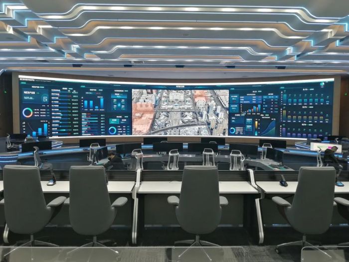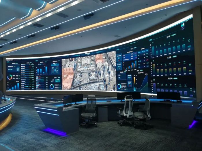 在通遼市城市服務(wù)指揮中心內(nèi)部,海信商用顯示為其提供了專業(yè)的LED拼接顯示產(chǎn)品,吸睛奪目。