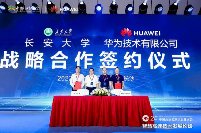 7月27日,在中國(guó)公路學(xué)會(huì)主辦,湖南省公路學(xué)會(huì)和華為技術(shù)有限公司協(xié)辦的第二十四屆中國(guó)高速公路信息化大會(huì)上,華為智慧公路軍團(tuán)主辦智慧高速技術(shù)發(fā)展論壇。與各領(lǐng)域的重磅嘉賓共通場(chǎng)景需求、共商技術(shù)路線、共計(jì)智慧公路發(fā)展。在大會(huì)上,長(zhǎng)安大學(xué)與華為技術(shù)有限公司簽訂戰(zhàn)略合作框架協(xié)議。
