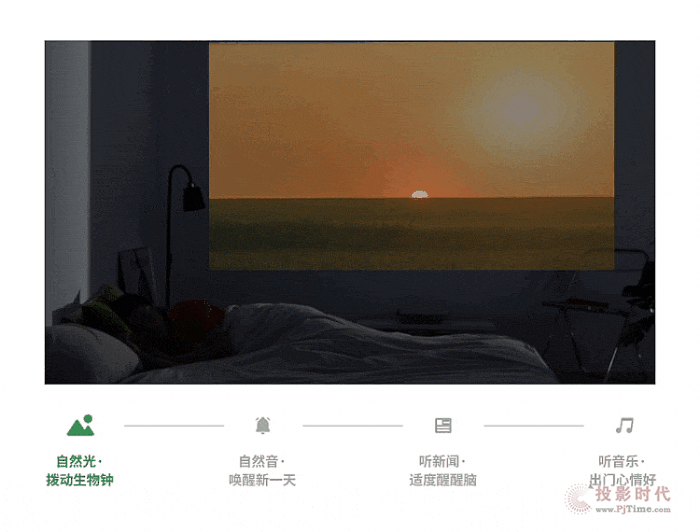 睡前窩在床上看一部電影,能極大程度地舒緩緊繃了一天的神經(jīng),讓精神和身體都逐漸為睡眠做好準(zhǔn)備。在此之后,堅(jiān)果O1S搭載的光影節(jié)律墻面在這時(shí)候則是用戶最好的陪伴。在其特有的助眠場(chǎng)景里,堅(jiān)果O1S徐徐播出的輕緩音樂與助眠背景為臥室營(yíng)造出放松的氛圍。隨著用戶在被窩里逐漸入睡,堅(jiān)果O1S畫面也逐步變暗、音量逐漸減少。當(dāng)用戶進(jìn)入睡眠后堅(jiān)果O1S超短焦投影便會(huì)自動(dòng)關(guān)機(jī),既省電又省心。除此之外,光影節(jié)律場(chǎng)面還能根據(jù)用戶需求切換到不同場(chǎng)景,營(yíng)造出不同的氛圍,讓家居搖身一變理想場(chǎng)景,墻面秒變氛圍墻。