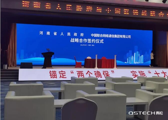 近日,在QSTECH青松高清LED大屏的見證下, 省委書記樓陽生與中國聯(lián)通集團(tuán)黨組書記、董事長劉烈宏舉行工作會談,出席省政府與中國聯(lián)通集團(tuán)戰(zhàn)略合作協(xié)議簽約儀式,共同啟動河南聯(lián)通百縣(區(qū))百項(xiàng)“三個一批”5G新基建項(xiàng)目集中開工。QSTECH青松提供的LED顯示產(chǎn)品及專業(yè)場景解決方案,全方位保障會議順利進(jìn)行。