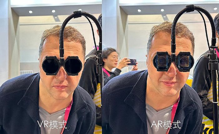 CES現(xiàn)場還展示了C方案搭配液晶光閥(LCLV)實現(xiàn)AR和VR模式切換的原型機(jī),真正將“一鍵切換AR/VR”變成了現(xiàn)實。