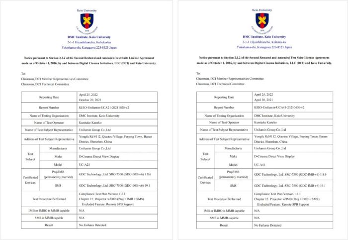 洲明UC-A41和UC-A21兩款LED電影放映系統(tǒng)均通過好萊塢DCI認證