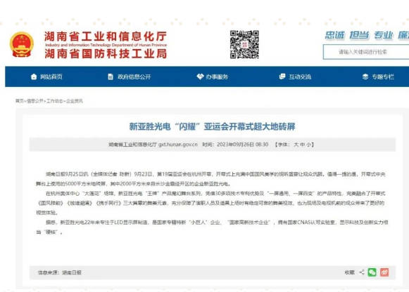 第19屆亞運會于9月23日在杭州正式開幕,開幕式是一場充滿中國特色、亞洲風(fēng)格的視聽盛宴,也是一部展示智能科技、綠色環(huán)保、文化創(chuàng)意的創(chuàng)新之作。開幕式上,新亞勝光電采用全球首款戶內(nèi)外通用且支持超大型地磚應(yīng)用的王牌產(chǎn)品MG7S系列,助力中央舞臺打造超大地磚屏,為觀眾呈現(xiàn)了一場精彩絕倫的視覺盛宴,卓越的應(yīng)用效果引發(fā)眾多媒體廣泛關(guān)注、競相報道!
